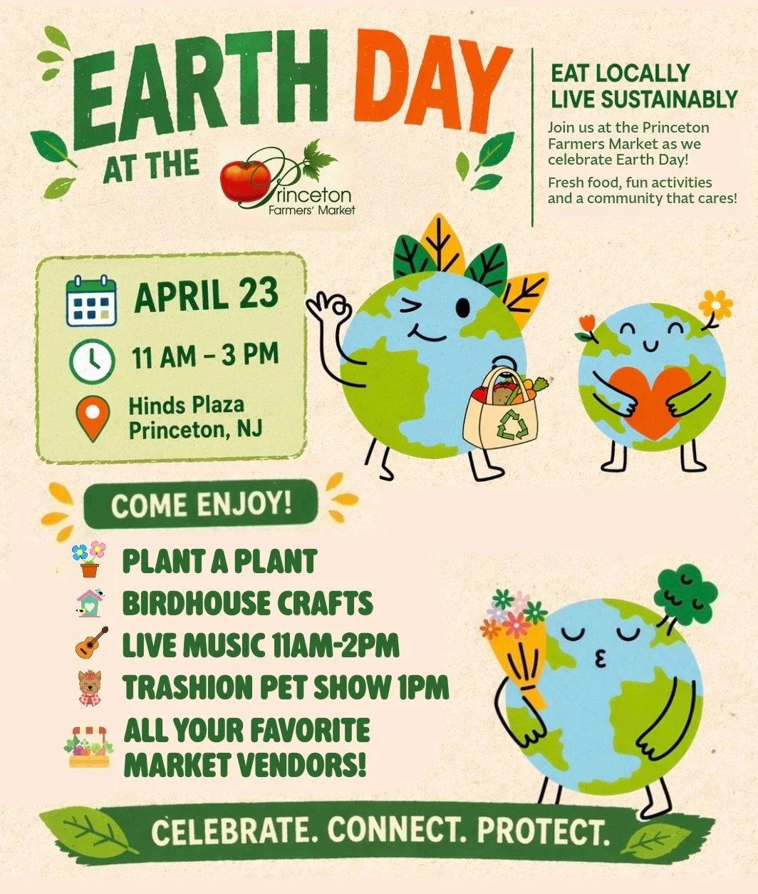 The Princeton Farmers Market began in 2009 with the idea of bringing healthy, locally produced food and goods right into the center of Princeton. Our goal is to build a vibrant community that supports local agriculture, small business, a healthier environment and a more sustainable future.